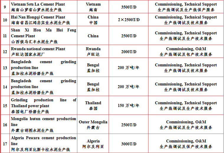 運(yùn)城市昌潤水泥工程技術(shù)有限公司主要業(yè)績表